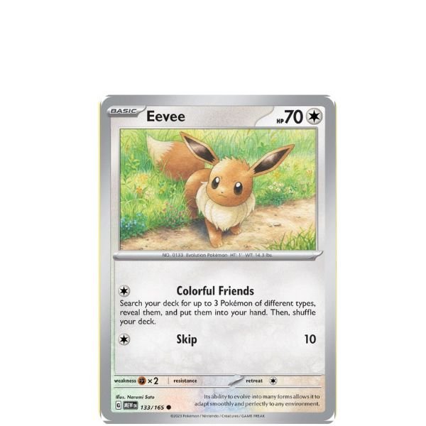 Bovendien is het artwork van Eevee 133/165 151 een echte blikvanger. De 151 set staat bekend om zijn frisse, vriendelijke en soms speelse stijl. Eevee komt dit keer naar voren in een luchtige en vrolijke scene die perfect past bij zijn persoonlijkheid. Het is precies het soort kaart dat je telkens opnieuw wilt bekijken. Of je hem nu in een map bewaart of in een display legt, Eevee geeft altijd een gezellige boost aan je collectie.